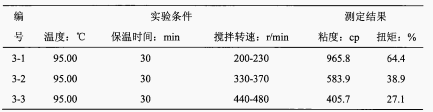 樣品溶液粘度的測定使用NDJ-5S旋轉粘度計,預熱30min,選擇3轉子、80r/min的轉速測定淀粉溶液粘度2淀粉溶液加熱過程中攪拌器轉速對粘度的影響保持加熱溫度為95°C,保溫時間為30min,其他條件不變,改變加熱過程中電動攪拌器的轉速,測定淀粉溶液粘度。本實驗